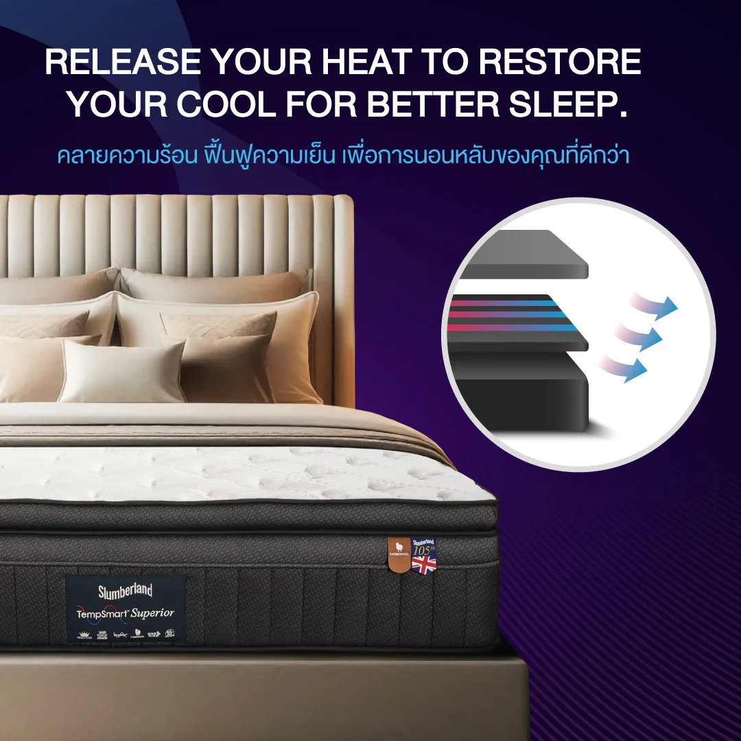 The TempSmart II mattress is an innovation developed from the NASA astronaut suit to regulate body temperature by containing a micro-capsule with good heat transfer properties from Horse Hair fabric and Lambswool fibre, helping maintain a balanced body temperature and feel fresh throughout sleep. Complemented by the exclusive Spacer Breathing Layer technology, the TempSmart II allows the air to circulate which making all your sleep the perfect time of relaxation.