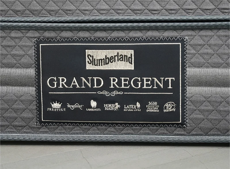Slumberland TempSmart Grand Regent with exclusive superior temperature conditioning,  kikoo's innovative technology, keeps you comfortably cool, for 12+ hours.  Kikoo's technology, a naturally sustainable band solution, helps excess heat flow away and absorbs body heat, while you sleep.  Also, exclusive TempSmart fabric feature maintains just right temperature, all night.  The exceptional ergonomic support offers you  good motion to keep you from bothering your partner.  With the premium quality natural latex, you will feel comfort and relaxation. TempSmart Grand Regent specially offers for you with Horse Hair and Pure Lumbswool to privilege comfort with an excellent thermal and acoustic insulation. TempSmart Grand Regent is your affordably luxury mattress that shapes your future sleeping.