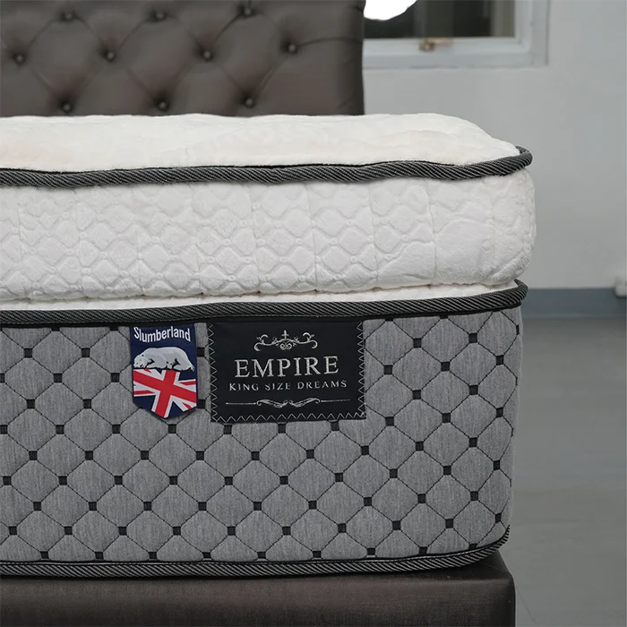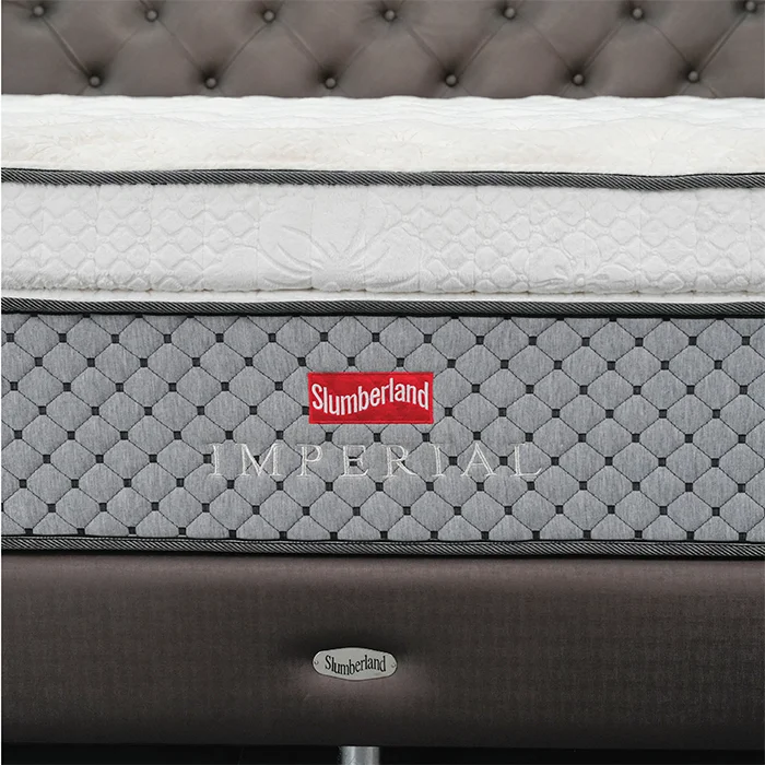 The Slumberland Imperial Empire reflects the luxury and value of sleep for you. Offers you a design with a luxurious pillow top, adding softness and comfort with a quality, imported velvet fabric from Belgium, and the sewing design providing the highest value for your bedroom. Kikoo's innovative technology, keeps you comfortably cool, for 12+ hours. Kikoo's technology, a naturally sustainable band solution, helps excess heat flow away and absorbs body heat, while you sleep. Create a unique fusion, provides proper support levels required for each body zone with the premium quality natural latex, you will feel comfort and relaxation.