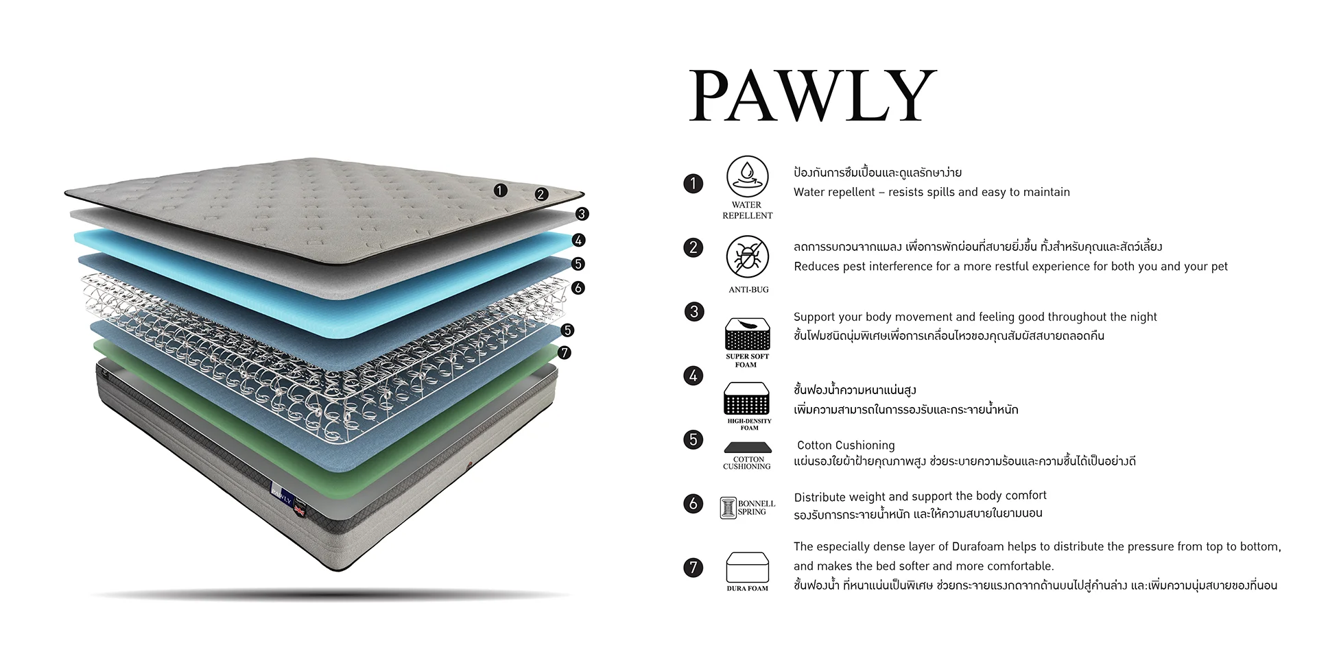 Specially woven with extra-tight fibers to resist scratches from pet claws, prevent liquid penetration, and allow for easy cleaning. The fabric helps reduce the buildup of dust, allergens, and insects – ensuring a fresh, hygienic mattress every night.