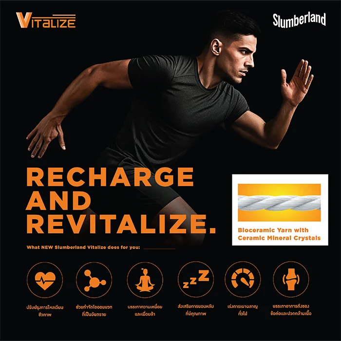 Vitalize Active integrates Bioceramic Yarn with Ceramic Mineral Crystals and Far Infrared (FIR) technology, which gently converts body heat into mild infrared energy and naturally reabsorbs it into the body. This process supports bodily balance, enhances sleep quality, and improves overall restorative efficiency—allowing you to wake up feeling energized and ready for an active day.