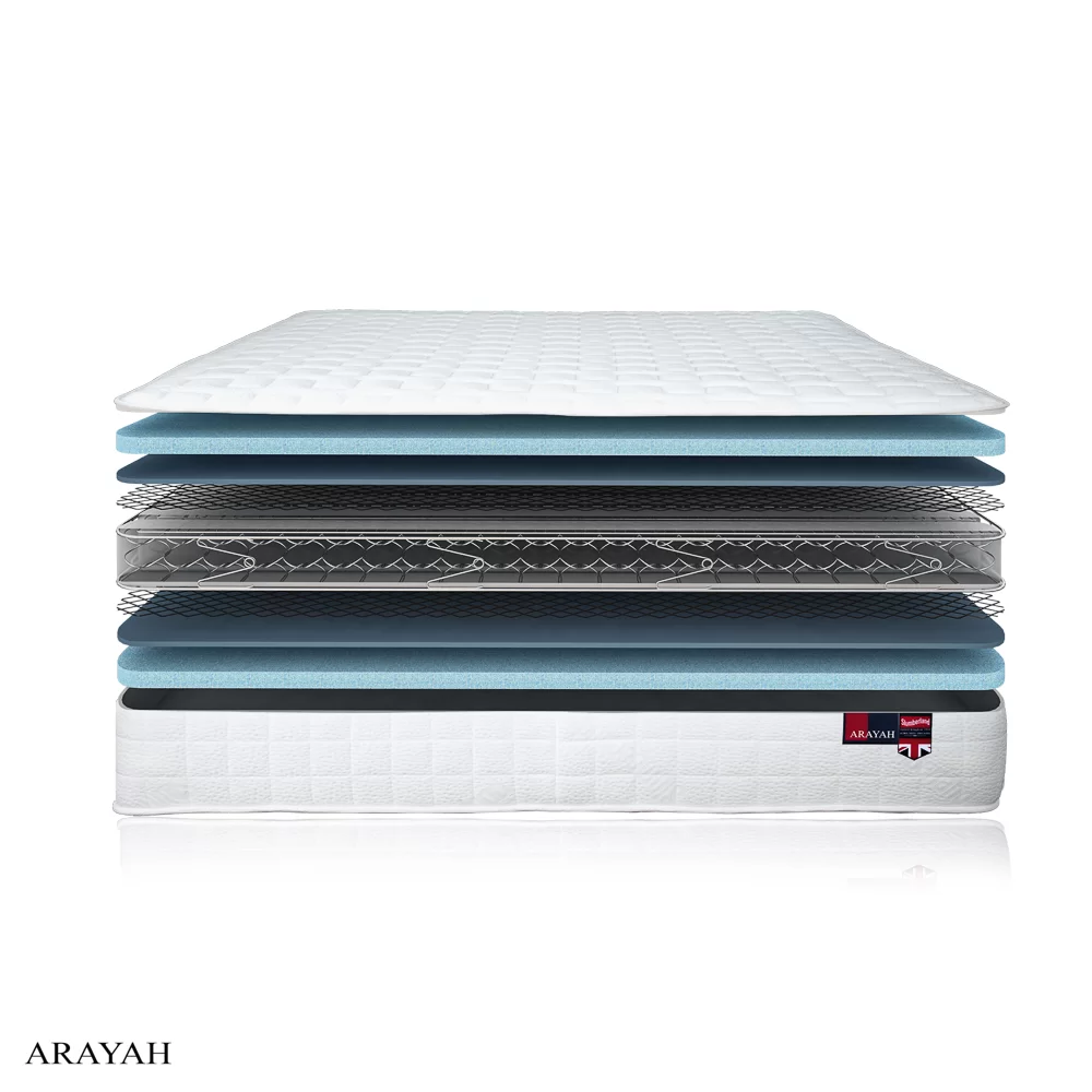 ที่นอนสลัมเบอร์แลนด์ รุ่น Arayah ออกแบบเพื่อคุณที่ชอบความแน่นนุ่มเป็นพิเศษ รู้สึกสบายตลอดการนอนหลับ ด้วยผ้าถักคุณภาพดีนำเข้าจากต่างประเทศเคลือบ Sanitized Actifresh ช่วยลดโอกาสในการเกิดภูมิแพ้ พร้อมด้วยระบบสปริงเครือข่าย PPS1500 ช่วยเสริมการรองรับแยกการเคลื่อนไหวของร่างกาย ลดการรบกวนยามนอนขณะพลิกตัว และมีการรองรับ 3 โซน ด้วย Lumbar Support Insulator ชั้นตาข่ายรูปทรงเพชร เสริมรองรับน้ำหนักช่วงสะโพก ตั้งแต่หัวจรดเท้า เพื่อการนอนหลับพักผ่อนของคุณและคู่ของคุณ