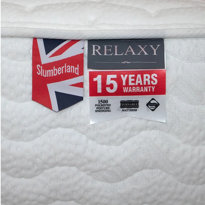 ที่นอนสลัมเบอร์แลนด์ รุ่น Relaxy มอบความรู้สึกสะอาดและสบายตลอดการนอนหลับด้วยผ้าถักคุณภาพดีนำเข้าจากต่างประเทศช่วยลดโอกาสในการเกิดภูมิแพ้ พร้อมด้วยระบบสปริงเครือข่าย PPS1500 ช่วยเสริมการรองรับแยกการเคลื่อนไหวของร่างกาย ลดการรบกวนอันเกิดจากการเคลื่อนไหวของคู่ของคุณ และมีการรองรับสรีระ 5 โซน ตั้งแต่ศีรษะจรดปลายเท้า โดยเฉพาะไหล่ และ สะโพกเพื่อการนอนหลับพักผ่อนของคุณ