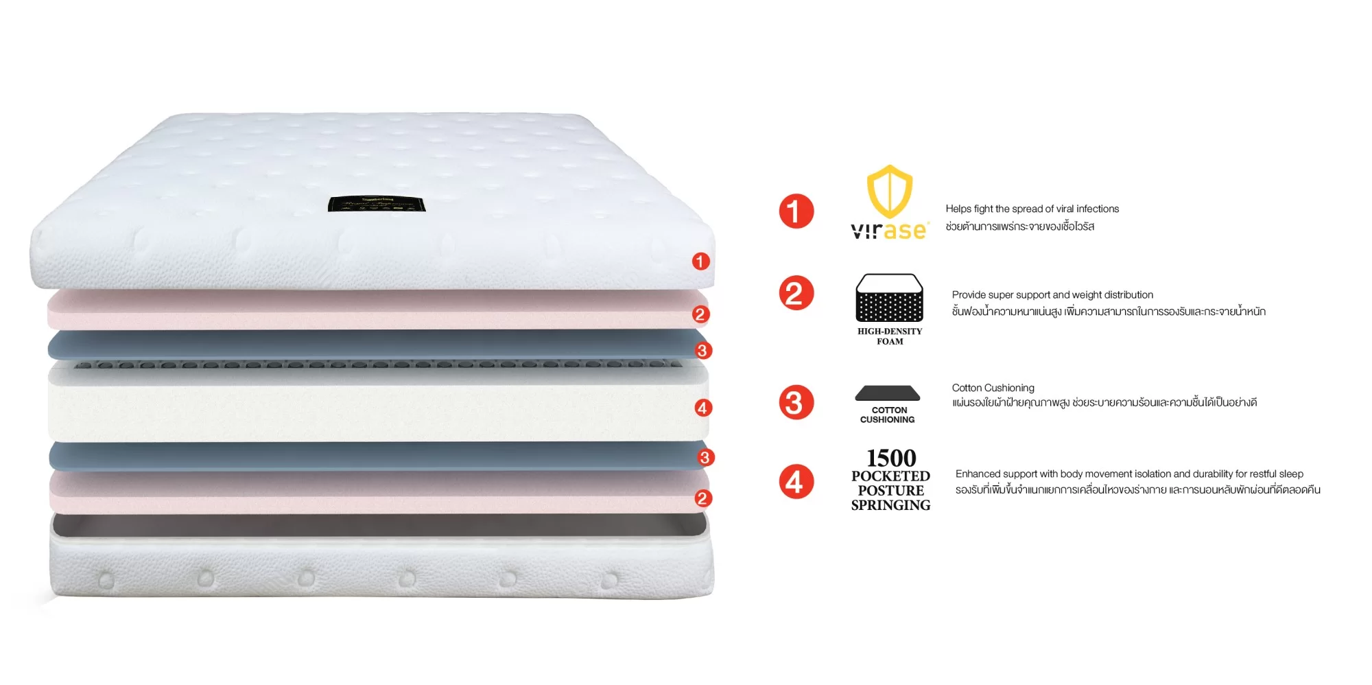 ที่นอน Slumberland รุ่น Royal Impression ด้วยการออกแบบร่วมสมัย มอบความรู้สึกนุ่มเป็นพิเศษด้วยโฟมนุ่มพิเศษช่วยเพิ่มความสบายในการนอนหลับ เช่นกันระบบสปริงแบบ Epison pocketed spring ช่วยแยกการเคลื่อนไหวที่ดี ให้คุณพลิกตัวโดยไม่รบกวนคู่ของคุณ ผ้านำเข้าที่มีคุณภาพสูงช่วยกระจายความร้อนความชื้นและปกป้องโดย "Sanitized Actifresh" ป้องกันแบคทีเรีย เชื้อรา และไรฝุ่น ให้คุณหลับสบายตลอดคืน