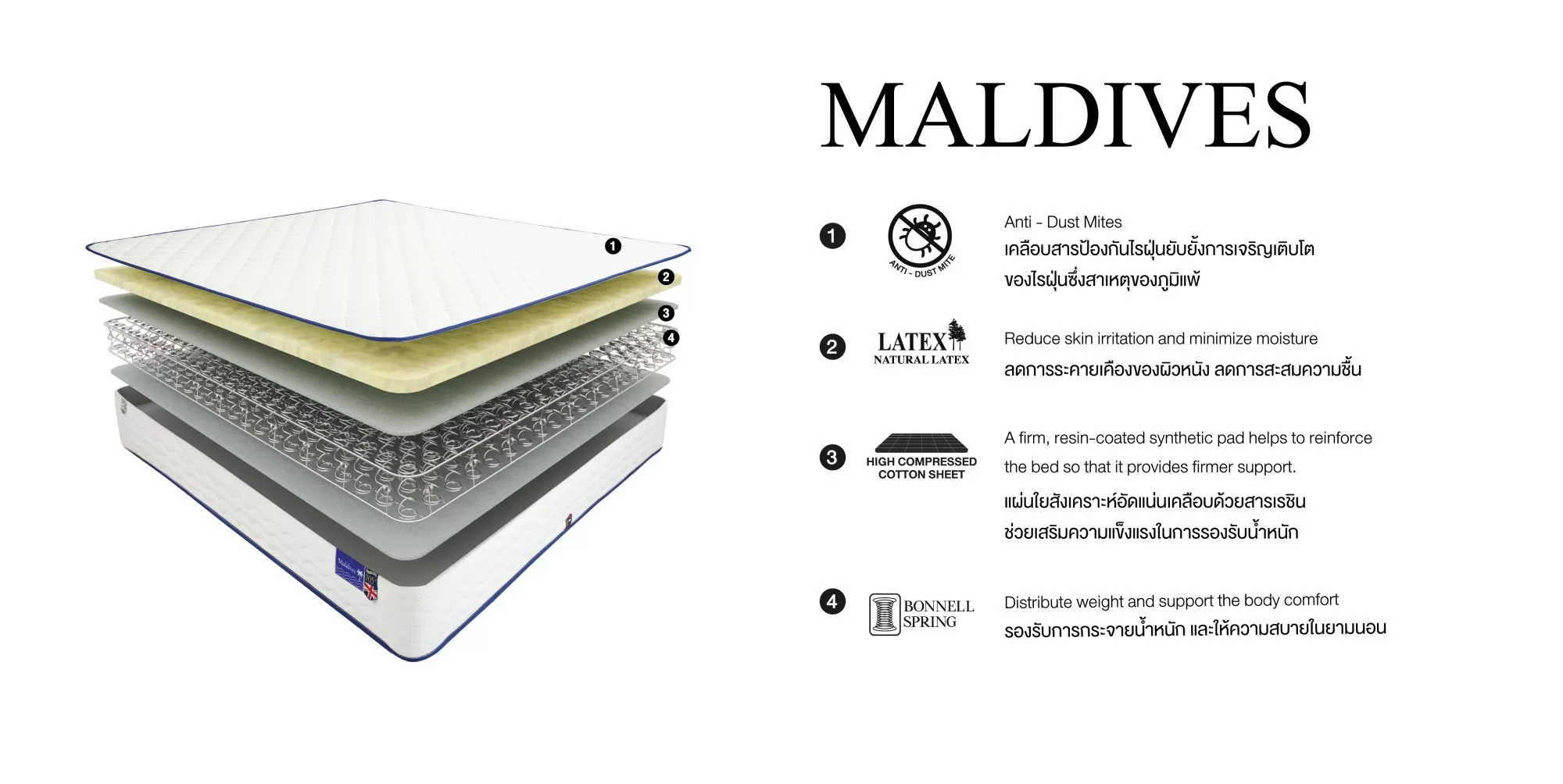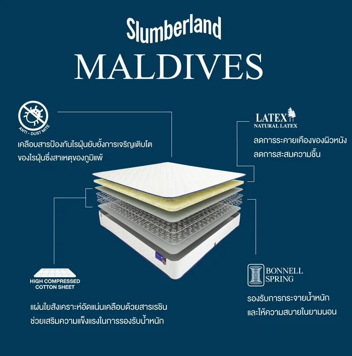 ที่นอน Slumberland รุ่น Maldives มอบการพักผ่อนที่ดี ให้การนอนหลับของคุณ เป็นช่วงเวลาแห่งการผ่อนคลายอย่างแท้จริง ความรู้สึกสบาย