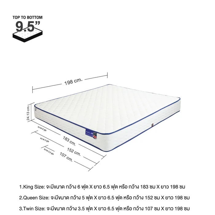 จากชั้นยางพาราธรรมชาติแท้ รองรับการได้ดี ลดการระคายเคืองของผิวหนังลดการสะสมความชื้น โครงร้างที่นอนแบบ Bonnel รองรับการกระจายน้ำหนัก และให้ความสบายในยามนอน เสริมด้วยชั้นฟองน้ำความหนาแน่นสูง เพิ่มความสามารถในการรองรับและกระจายน้ำหนัก ผ้าหุ้มที่นอน ที่เคลือบสาร Sanitized เพื่อป้องกันเชื้อรา แบคทีเรีย และไรฝุ่น ช่วยยับยั้งการเติบโตของจุลินทรีย์ที่อาจก่อให้เกิดกลิ่นไม่พึงประสงค์และโรคภูมิแพ้ ให้คุณได้นอนหลับสบายตลอดคืน