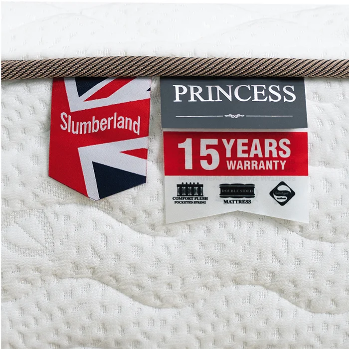 ที่นอนสลัมเบอร์แลนด์ รุ่น Princess ให้คุณสัมผัส รู้สึกอย่างอิสระนุ่มสบาย ยกระดับคุณภาพการนอน ด้วยระบบสปริงเฉพาะของสลัมเบอร์แลนด์ พร้อมด้วยชั้นนุ่มพิเศษให้คุณเคลื่อนไหว สัมผัสสบายตลอดคืนที่คุณนอนพักผ่อน ที่นอนรุ่น Princess ใช้ผ้าทอลายคุณภาพนำเข้าจากต่างประเทศ ตามมาตรฐานของสลัมเบอร์แลนด์ ป้องกันแบคทีเรีย เชื้อรา และไรฝุ่น ที่นอนสลัมเบอร์แลนด์ Princess คือ การลงทุนที่ดีที่สุดในราคาสบายเพื่อการนอนหลับที่ดีของคุณ